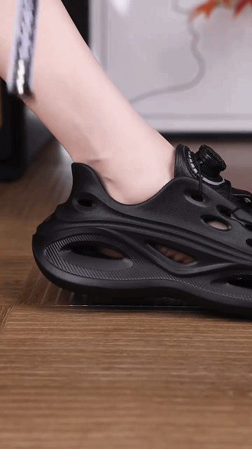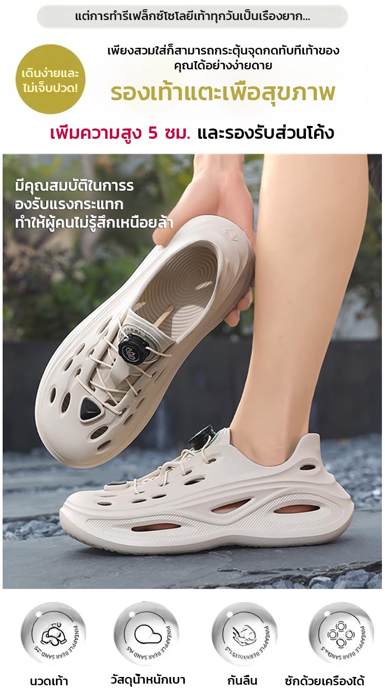 【ไม่ต้องผูกเชือก】รองเท้าฉลุลลายลำลองผู้ชายแบบมีปุ่มหมุนกันลื่นได้