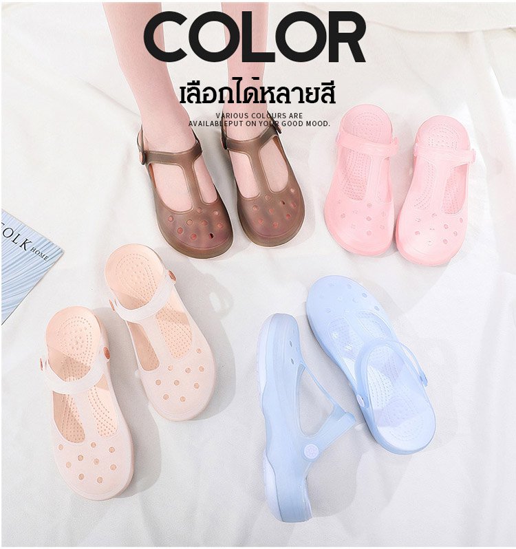 รองเท้าแตะฉลุ พื้นหนา กันลื่น สีทึบ